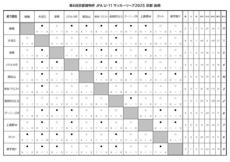 【 U-11京都建物杯 府リーグ1部B】